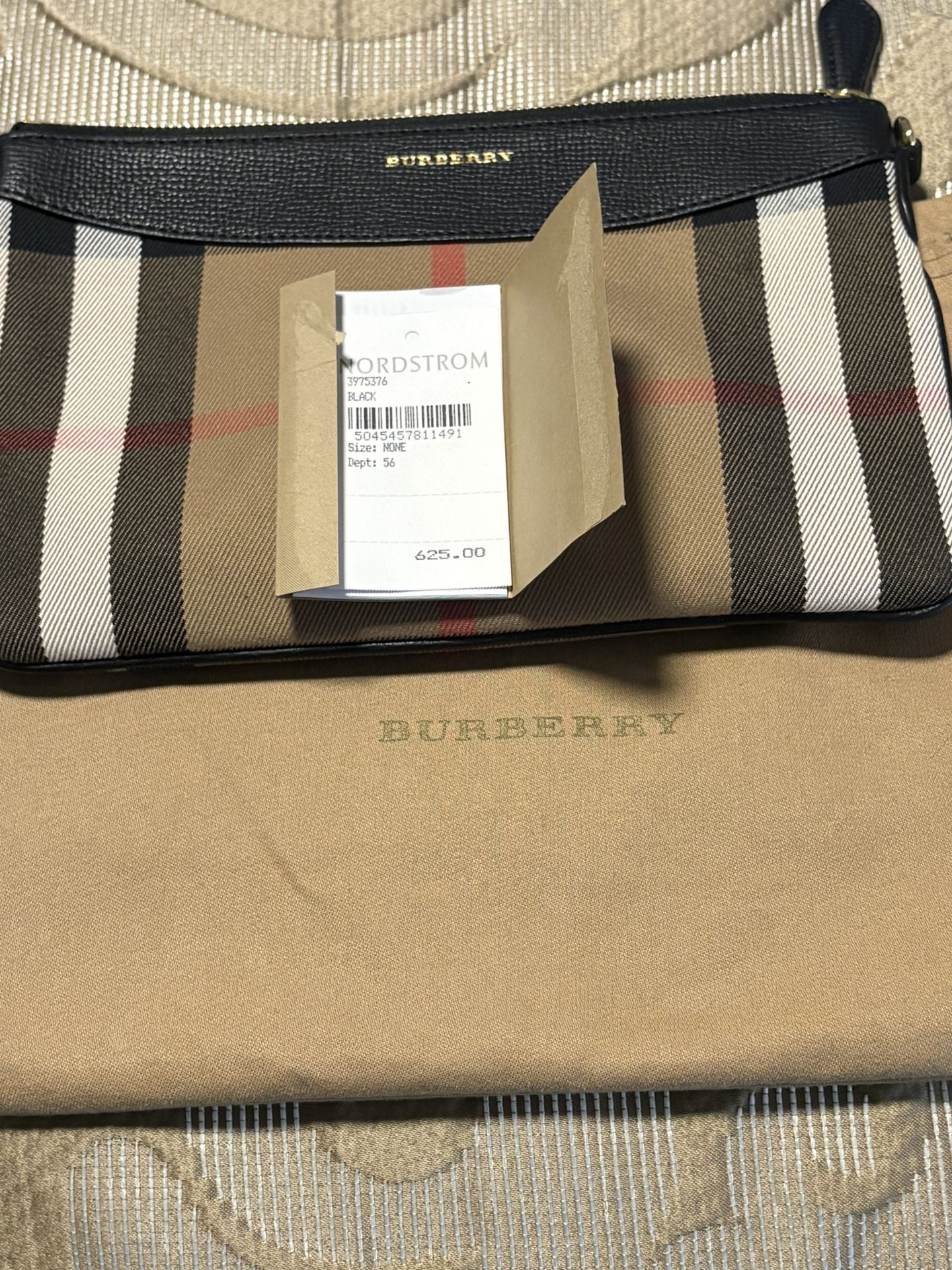 Brand new authentic Burberry purse with black strap beautiful for Christmas gift. Has original tags on it beautiful beautiful beautiful.