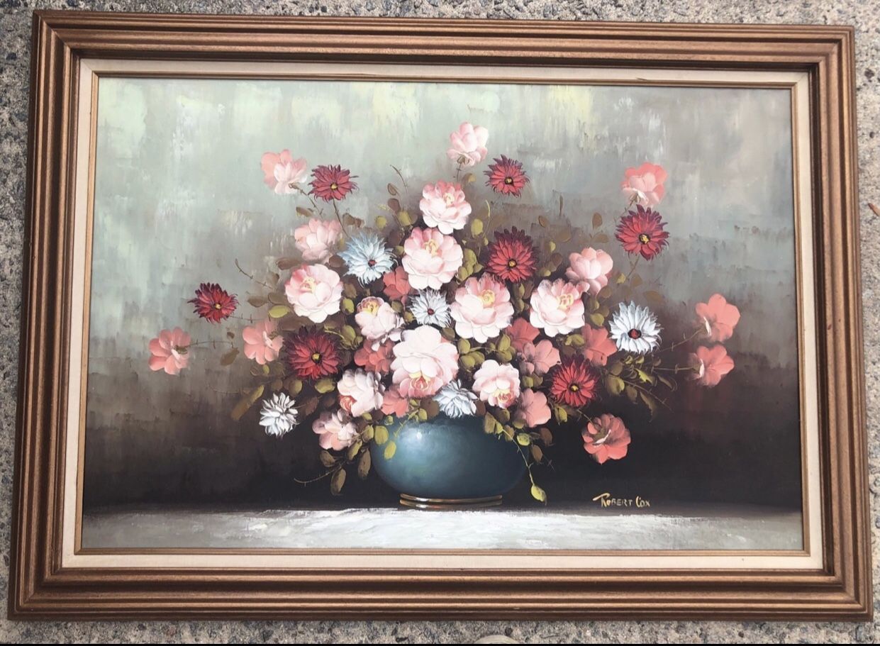 Beautiful Original Vintage Still Life Painting By Robert Cox 1(contact info removed) - 42 X 30