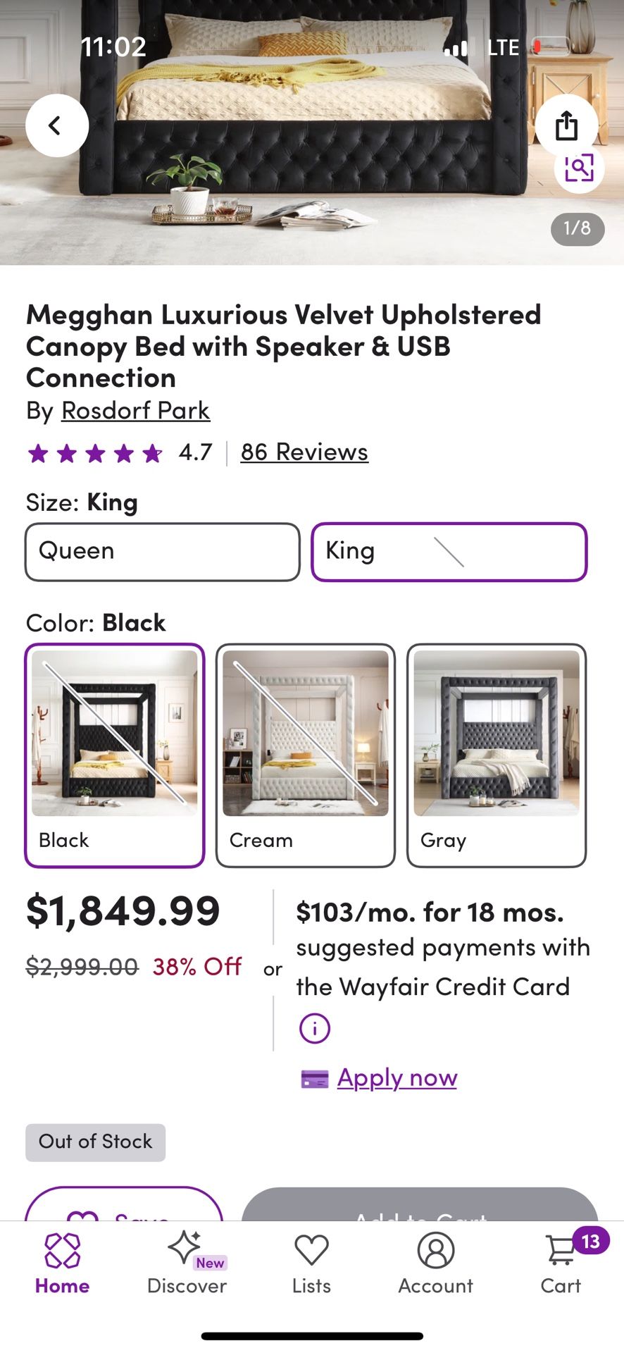 King size bed !! Had for 4 months never even plugs up and used speakers got for 2600 I’ll take 1200