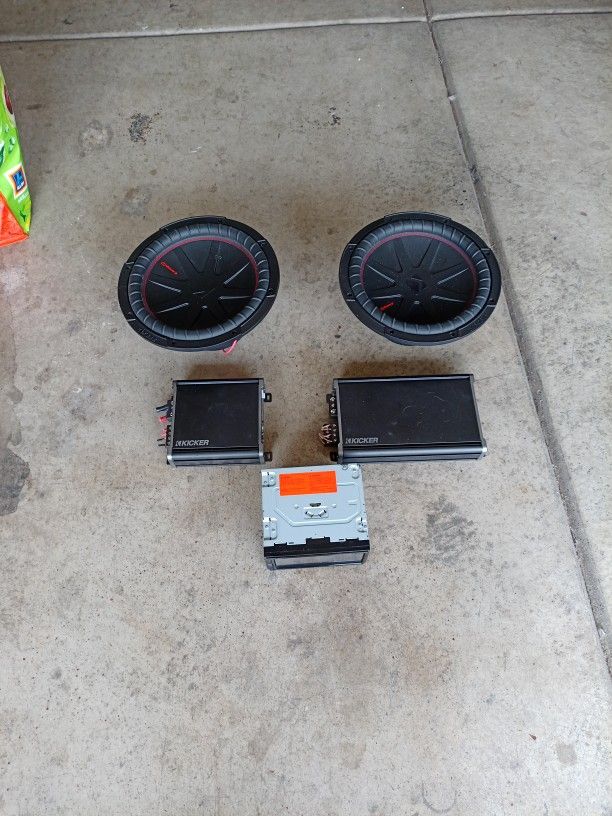 Car audio system barley used 2 kicker amps 2 12 inch sub and pioneer touch screen