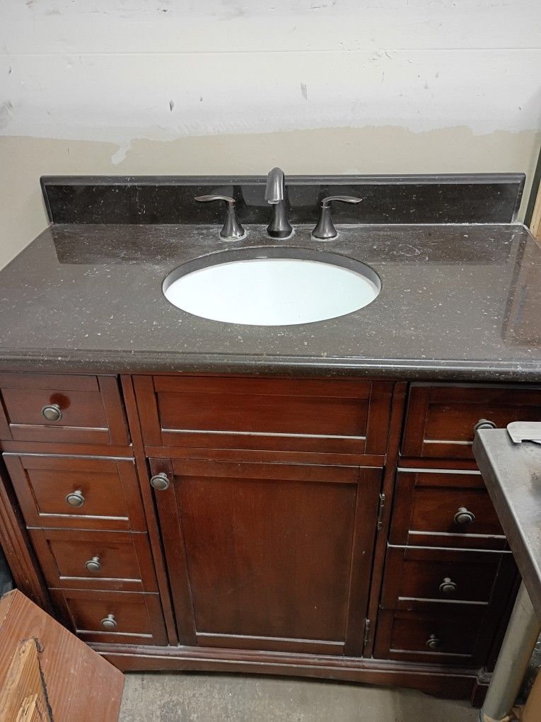 Good condition vanity and sink remodel your bathroom great tile top! Asking $100 but very open to offers ! Feel free to ask questions ?