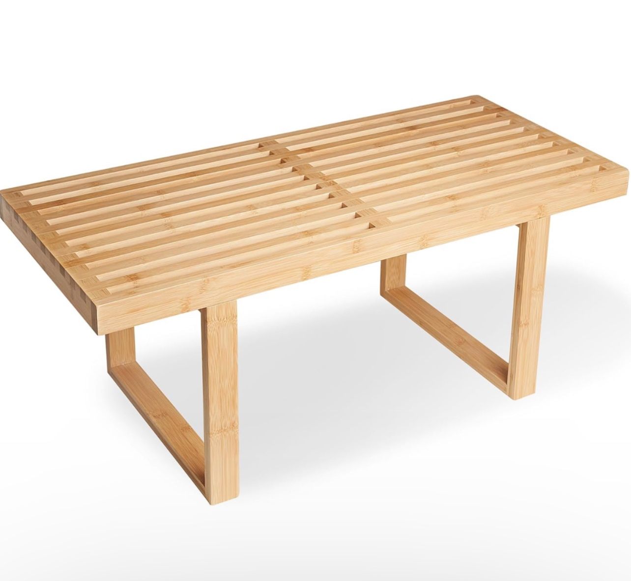 Bamboo Nelson Slat Wooden Bench, Small Wood Benches for Entryway, Living & Dining Room, Kitchen, Bedroom, Bathroom, Hallway, Front Door, For Indoor & Outdoor Patio Use, Mid Century Modern Decor