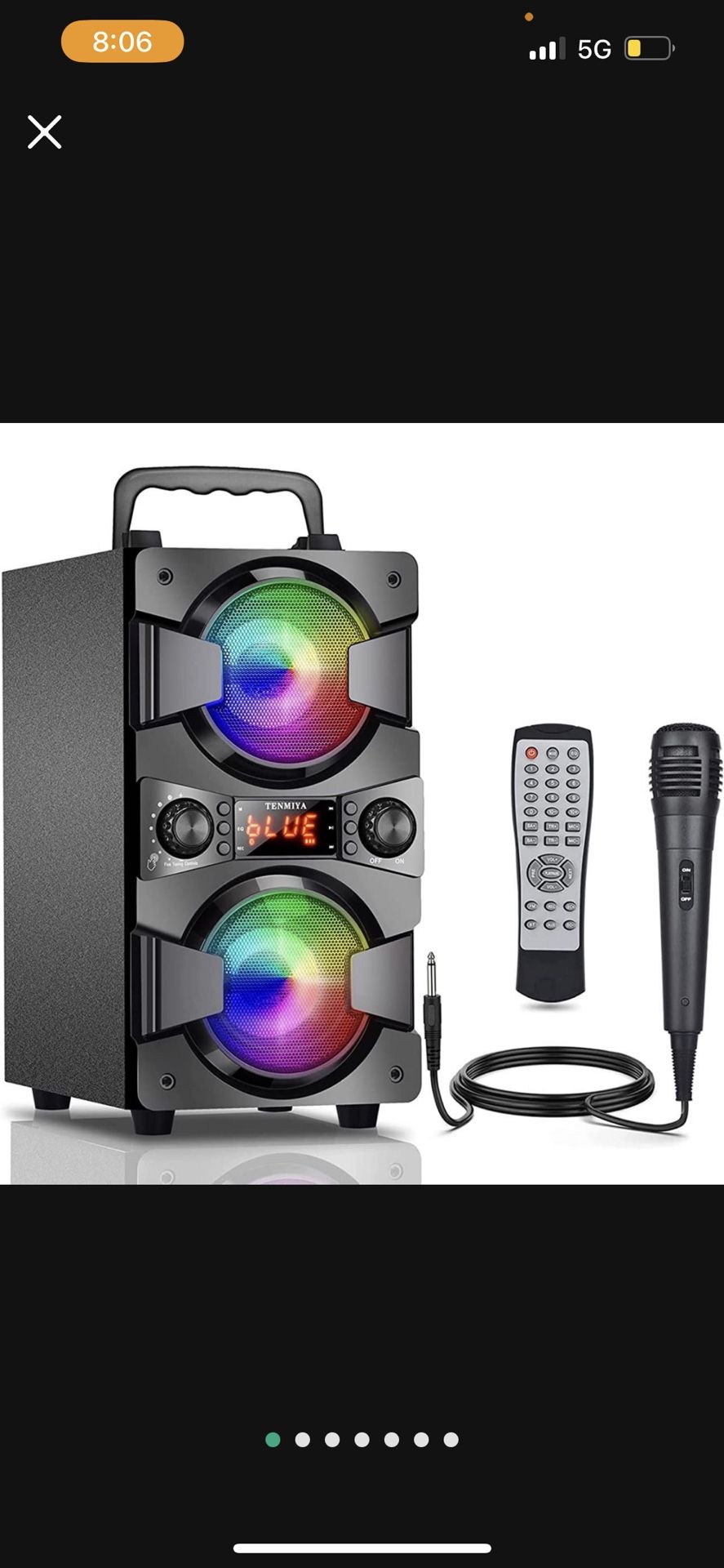 60W Bluetooth Speakers Portable Wireless Speaker with Double Subwoofer Heavy Bass, FM Radio, Microphone, Lights, Remote, EQ, Loud Stereo Sound System