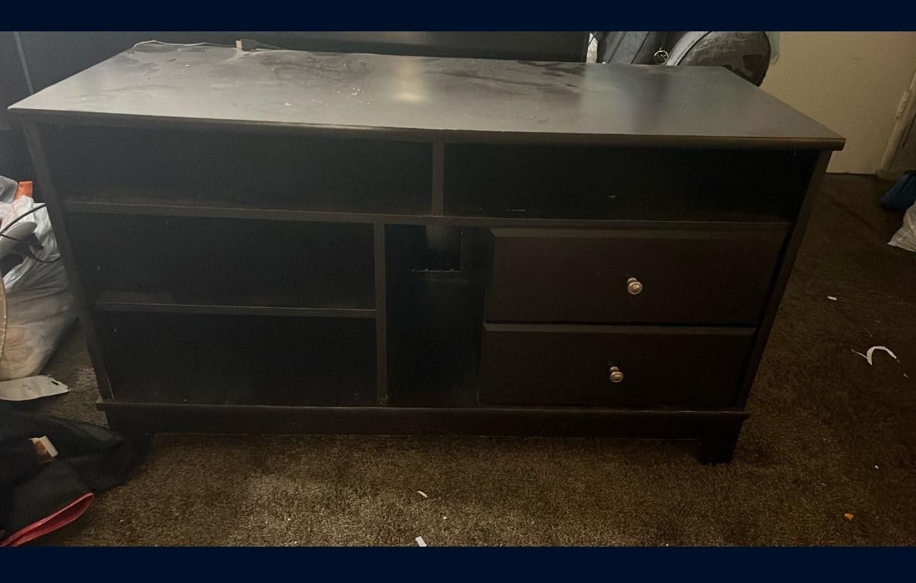 Dark brown tv stand Would fit up to a 55" tv Still in good condition, drawers work perfectly fine Asking $50 or make me a offer