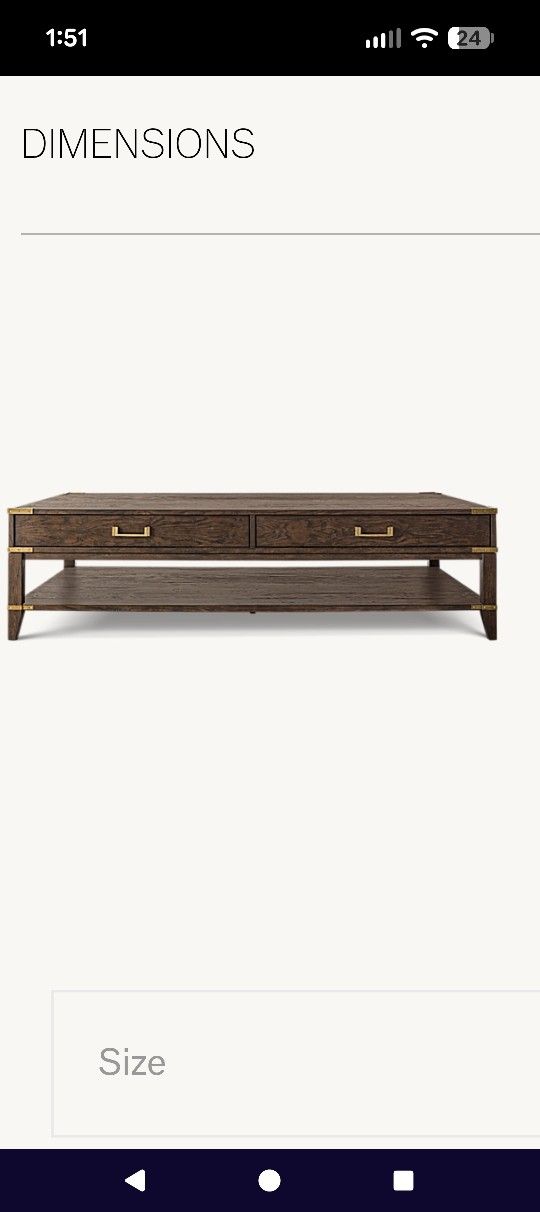 RH RESTORATION HARDWARE CAYDEN CAMPAIGN LARGE COFFEE TABLE 43x 67x18