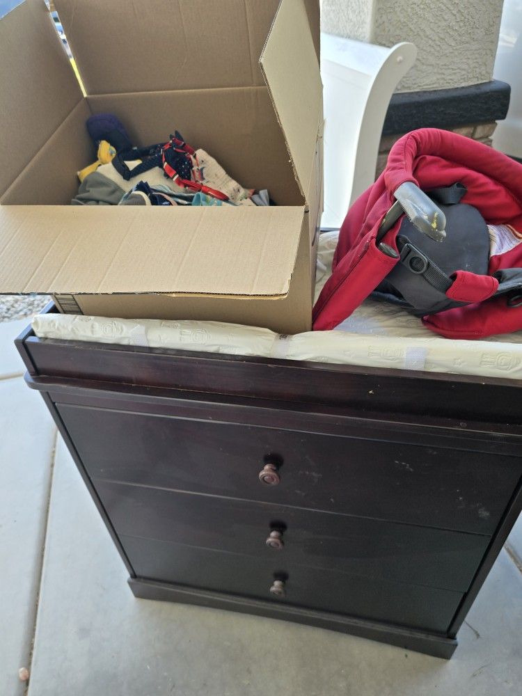 Some random clothing items and dresser with changing table on top.. take everything in the pick for $40. Must pick up.