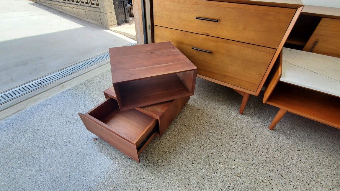 No longer available on cb2 but perfectly matches the coordinating coffee table i also have for sale! Acacia wood, rotating action and a solid drawer for storage!