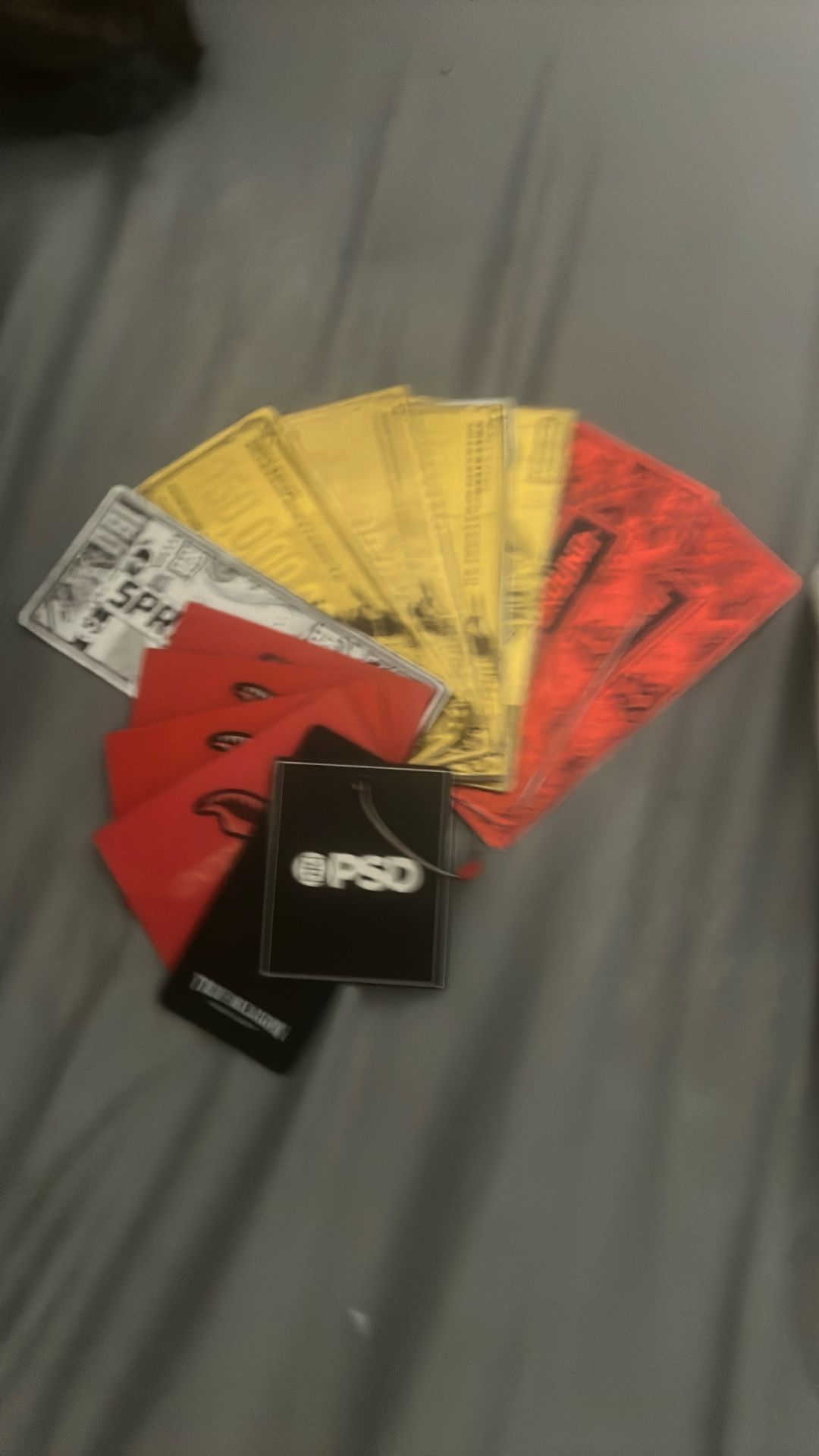 sprayground backpack tags 2 red tags ones 4 gold tags ones 1 silver tag 4 small tags and additional true religion and psd tag!!.