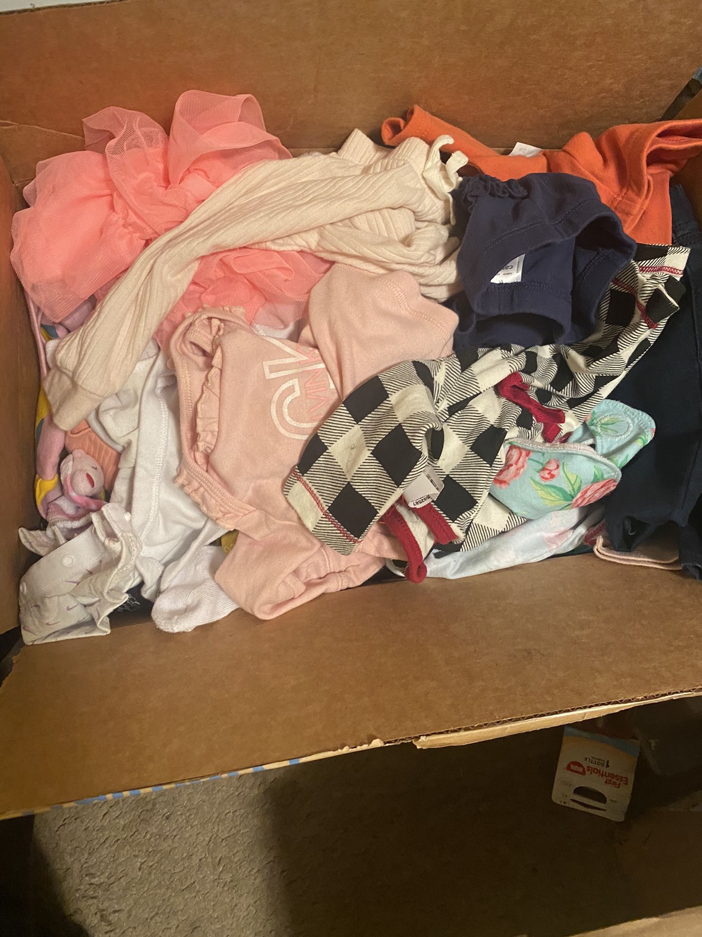 Infant girl clothes, gently used. Has hair accessories, socks, and more.