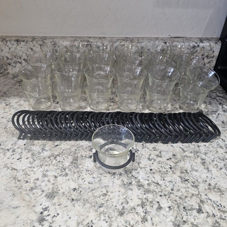 Set of 37 Glass Votive Holders with 39 Metal Frames