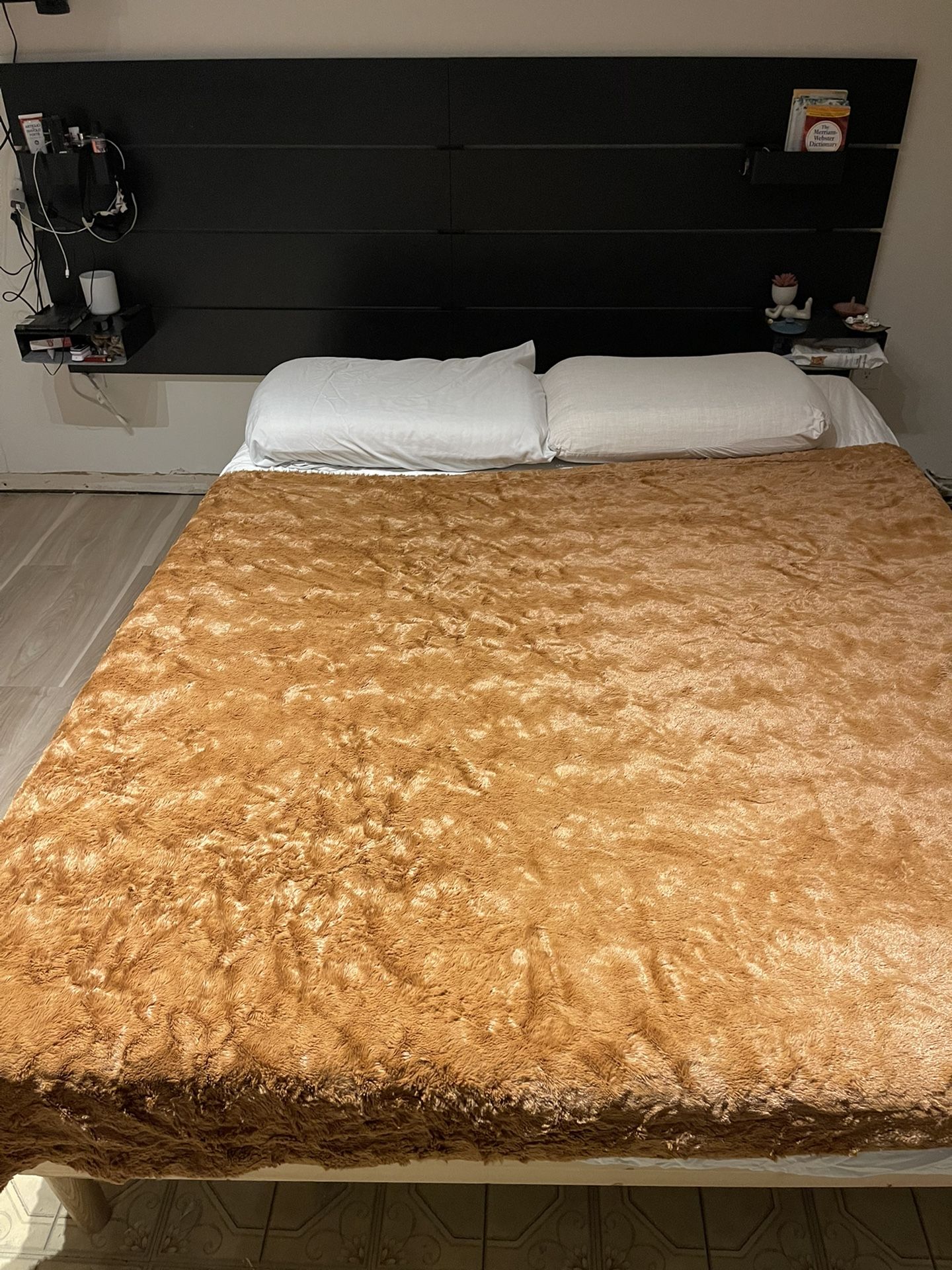This includes : Mattress (queen size) Bed frame (queen size) Headboard with 2 compartments on each side Selling due to upgrading the apartment (remodeling)