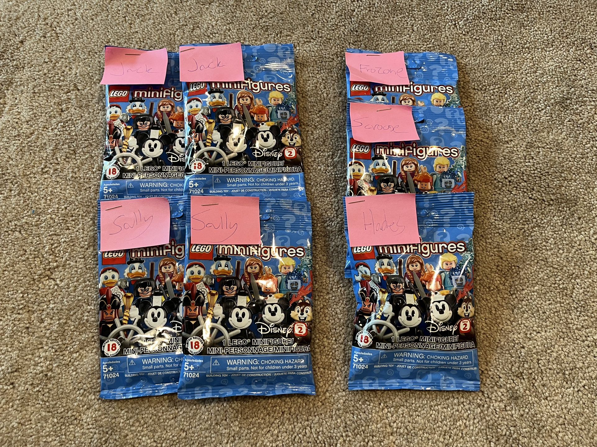 Lego Disney Mystery Minifigures Series 2 New in sealed bags, felt for verification Jack x2 Sally x2 Scrooge Hades Frozone Prices vary. $80 for the lot. Check out my page for more figures