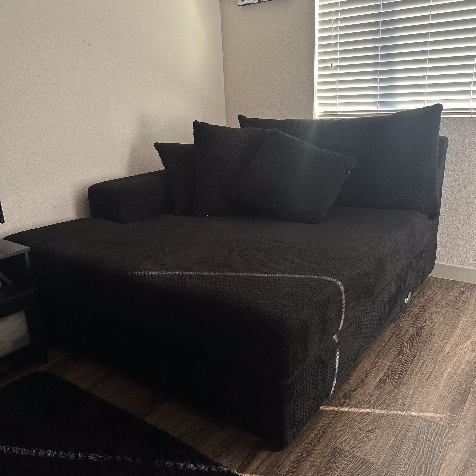 Comes with 3 throw pillows Length 60 inches Depth 70 inches Pick up only