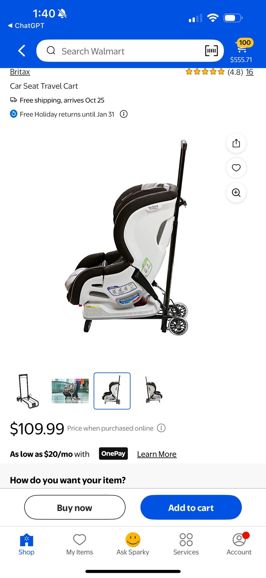 Baby Car seat travel cart airplane approved Original price $110 New, open box