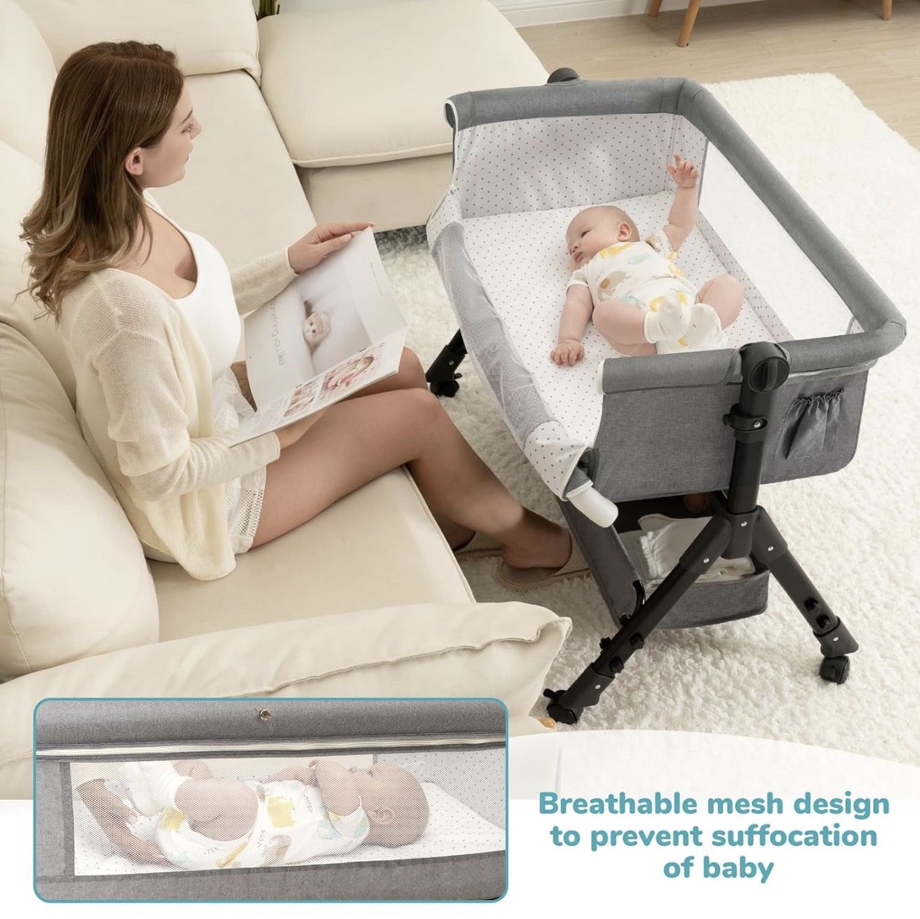 Baby Bedside Crib, Adjustable Bassinet with Wheels, Storage Basket, Mattress, Easy to Assemble and Foldable, Portable Baby Crib (Gray) It is sold at $70. If you are not going to buy, do not write to reduce the price. It is new, unopened, in its box. Se vende en $70 si no va a comprar no escriba para rebajar precio esta nuevo sin abrir en su caja