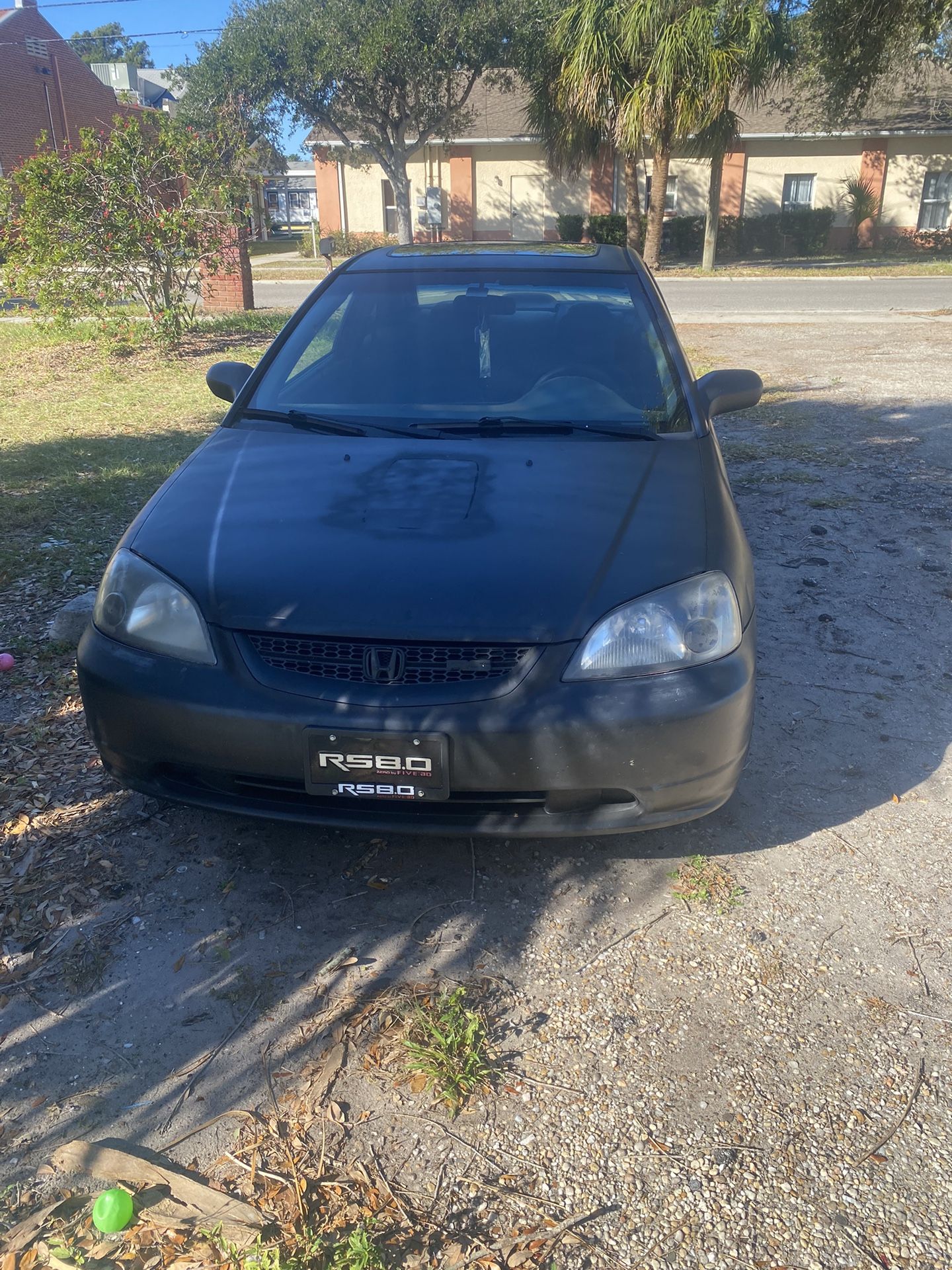 2002 honda civic runs and drives has cold a/c not the best looking car but will get you from point a to point b previous owner primered it black so door jams still red will need control arm bushing soon