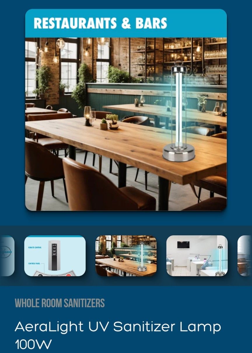 The Tool Klean Aera Light UV Sanitizer Table Top Lamp. Using powerful UV-C light, it kills 99.9% of bacteria, viruses, mold, and more without chemicals, heat, or ozone. Lab-certified and trusted by professionals, this portable lamp features a remote control, a delay start for safe exit, and versatile placement options. Warning: humans, pets and plants must not be in the room while the lamp is operating. I ONLY HAVE 1 LEFT