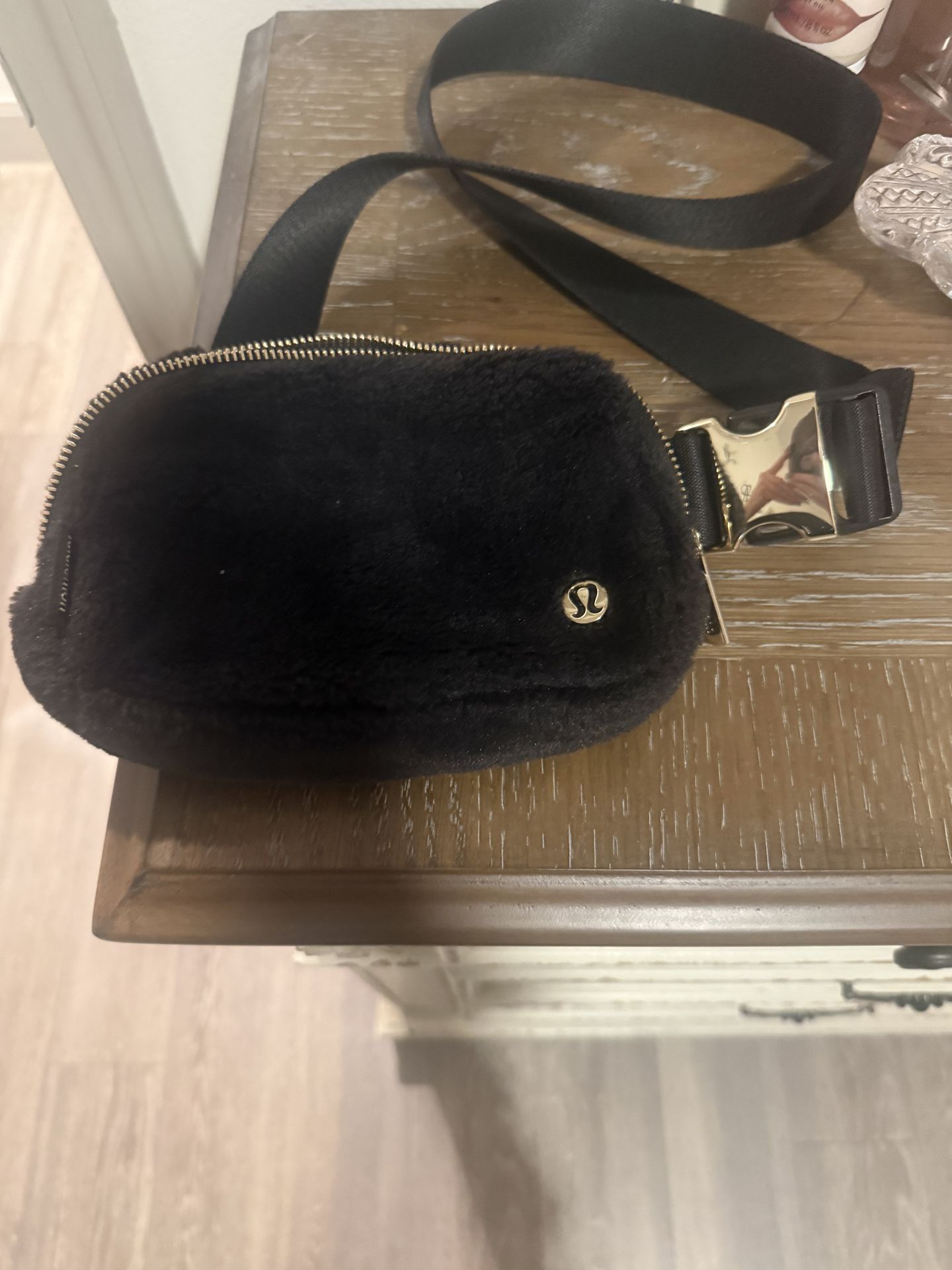 lululemon Black Faux Fur Crossbody Bag Gold Zipper Adjustable Strap