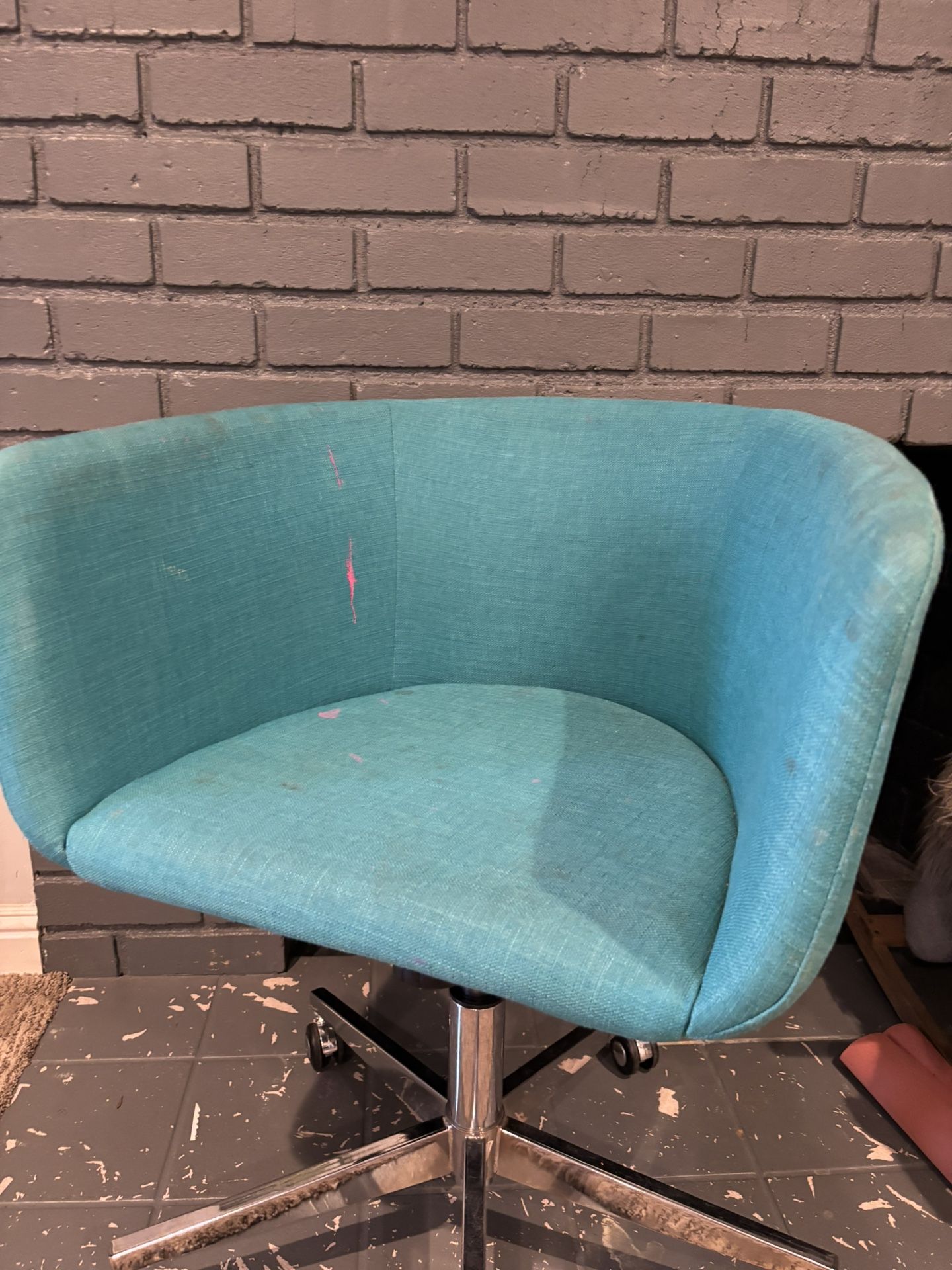 CB 2 swivel chair in mid century modern style (mcm). Was part of a home office, then part of the kids art room.