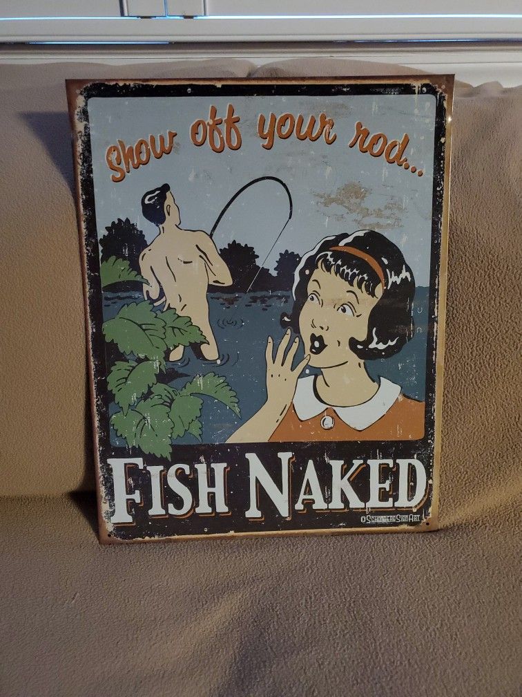 12x16 Metal Sign " Show Off Your Rod Fish Naked"