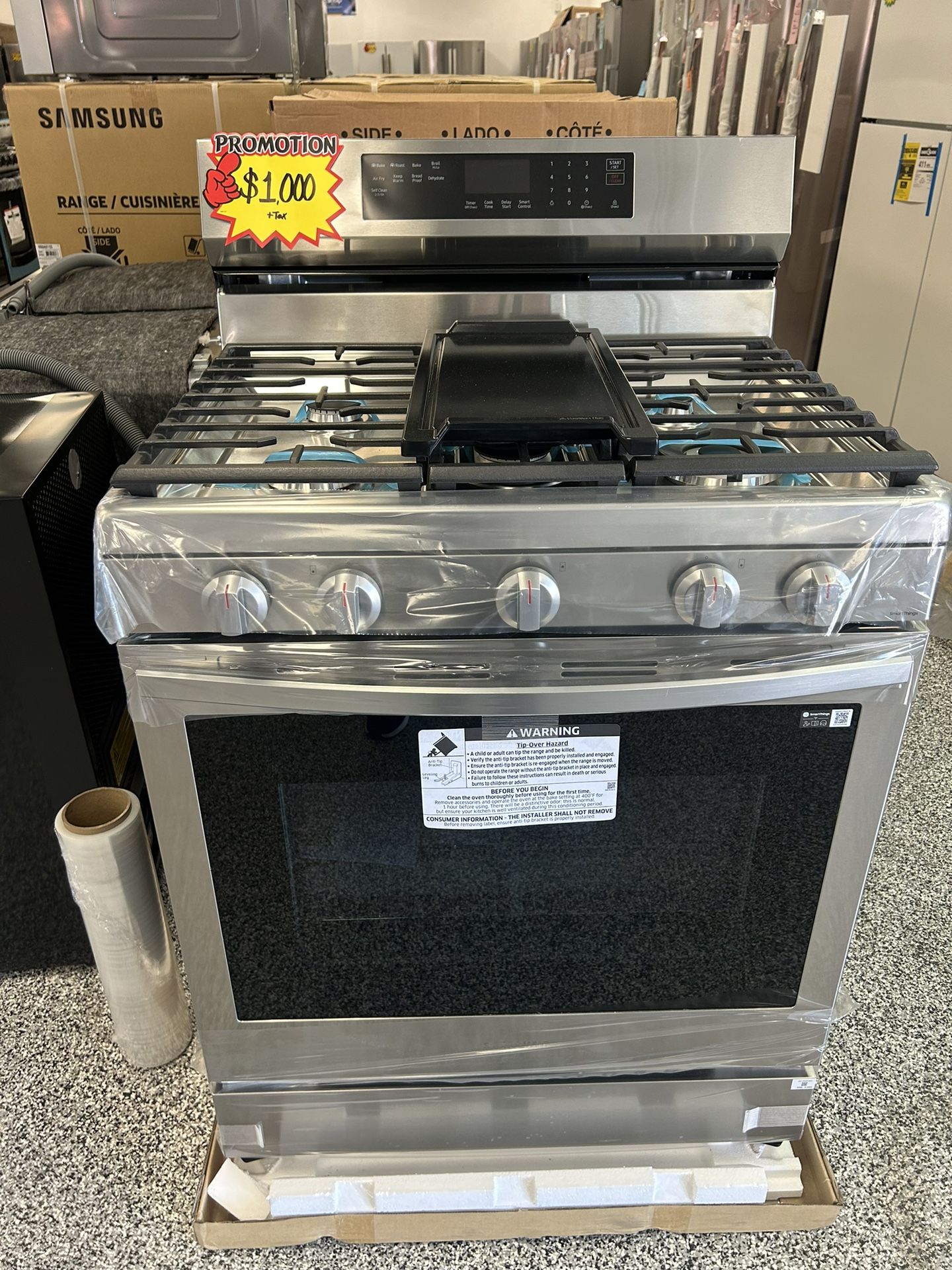 SAMSUNG GAS STOVE!!! Air Fryer!!! Convection Oven!!! STAINLESS STEEL BRAND NEW!!!5 Burners With Grilled!!!!