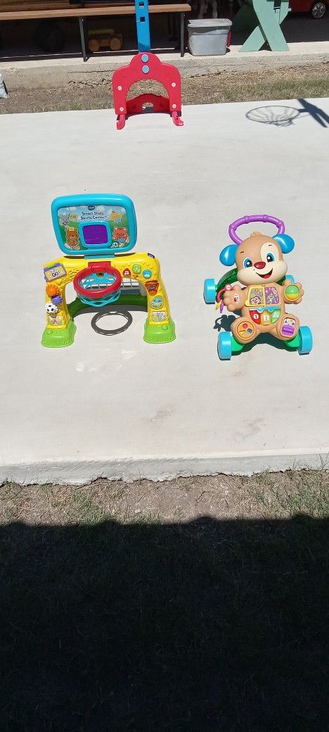 Vtech Smart Shots Sports Center n Learn and Play Push Walker. Both items in excellent condition n both have new batteries n work. Items are clean n sanitized. Will ONLY meet at 6480 NW loop 410, that is in the corner of Ingram Road and Loop 410 the gas station right across Holmes High School. Can also deliver in the San Antonio City Limits for $ 10. Accept cash or cash app ONLY.