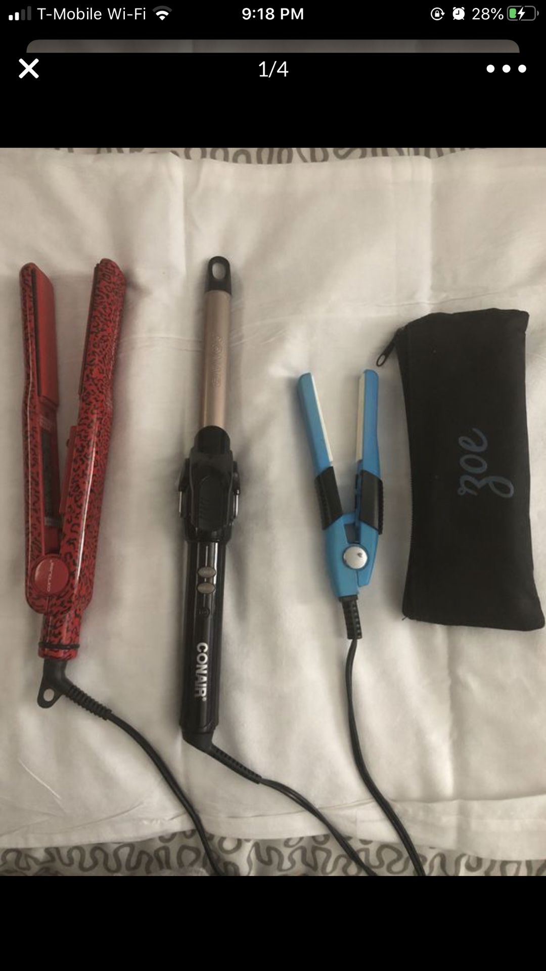 Conair instant heating curling iron Corioliss Pro Fix 1" Tourmaline Ceramic Ionic Flat Iron/ Hair Straightner Zoe hair straightener travel size with travel bag All in great conditions Pick up only Price for all of them