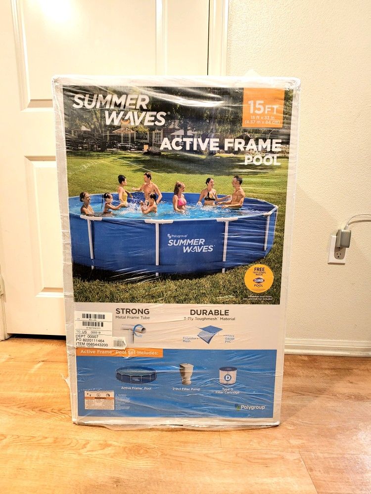 New 15 feet pool by summer waves NEW!! Size 15 feet x 33 inches included - strong metal frame PVC + steel - 3 layer durable polyester mesh - 2 in one filter pump - Type D filter cartridge Easy snap in design for quick setup