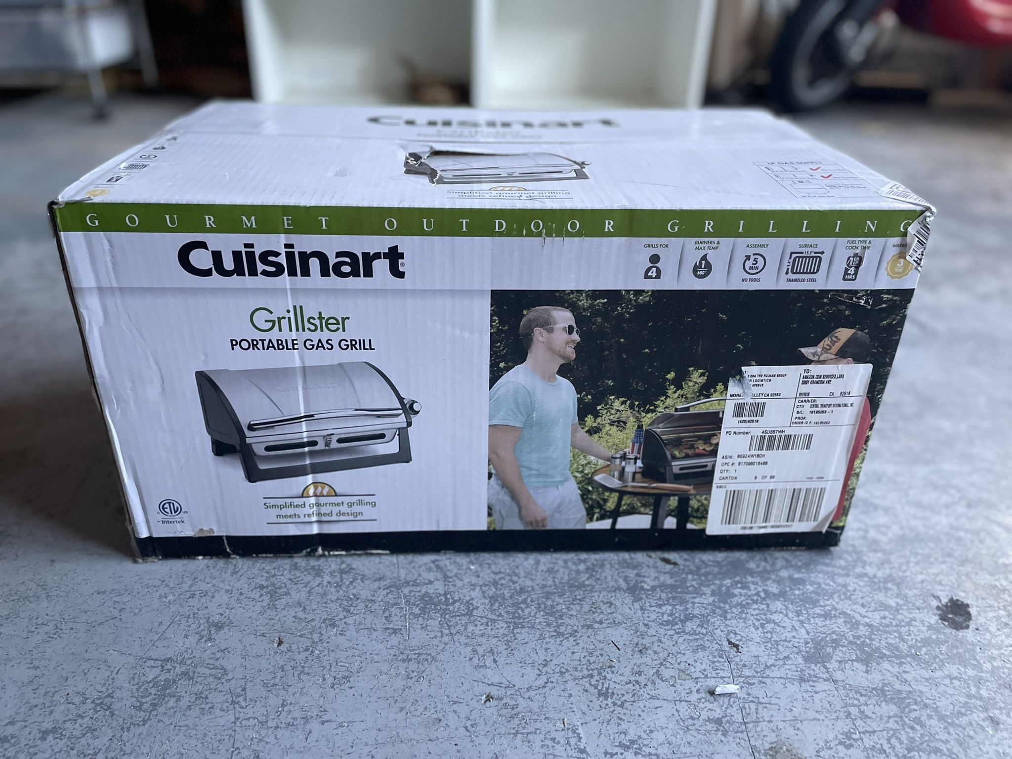 Cuisinart Grillster Portable Gas Grill, Stainless Steel Compact BBQ Grill with Locking Lid for Easy Transport, 8000 BTU Propane Grill with Dishwasher