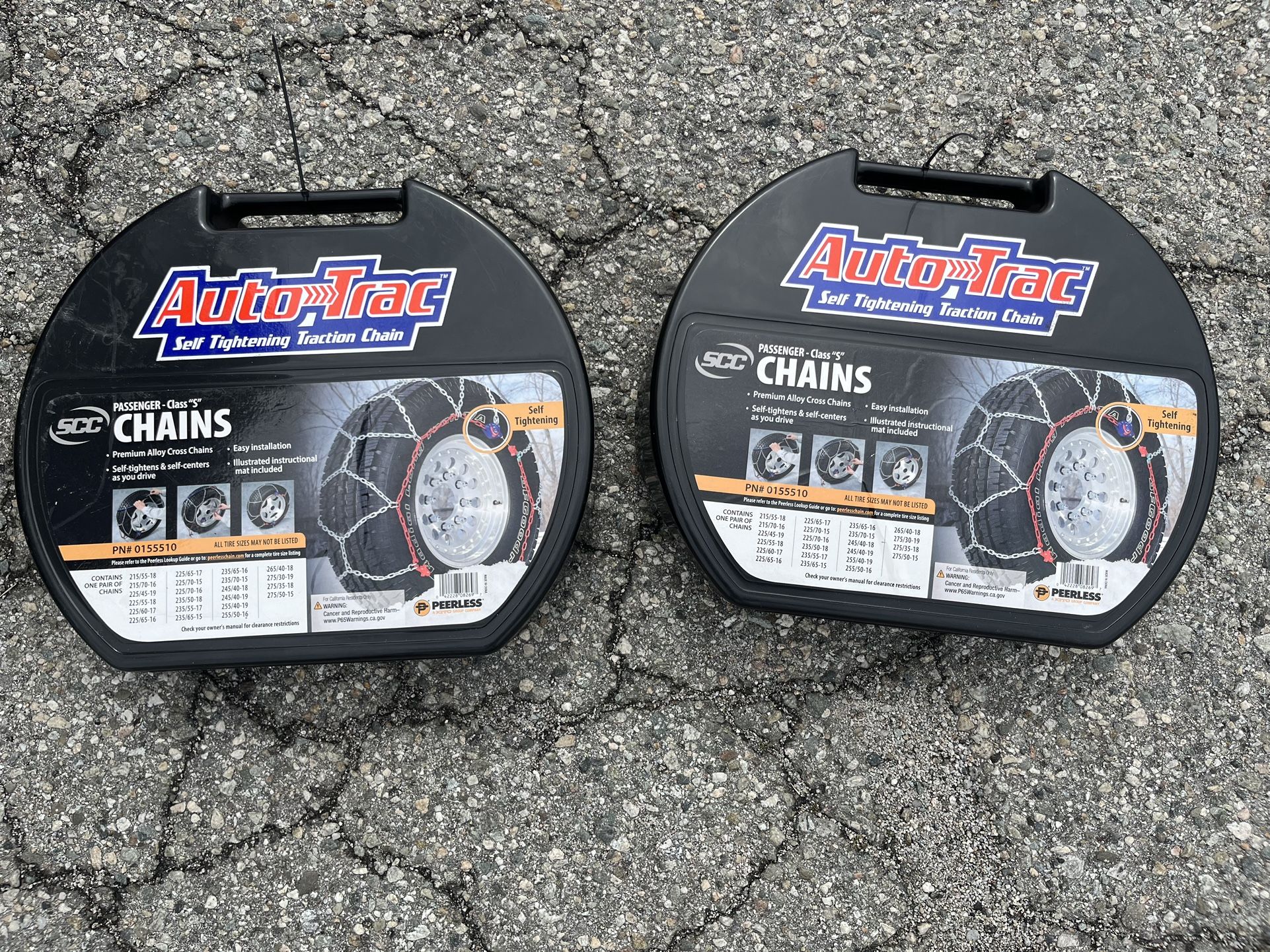 Two Sets of Self tighting snow chains, easiest to put on. Only used once and in great condition. No walmart or any other store will allow you to return snow chains, if you were thinking about buying from a store and returning. Paid $200 but selling both sets for $80 or $45 each.