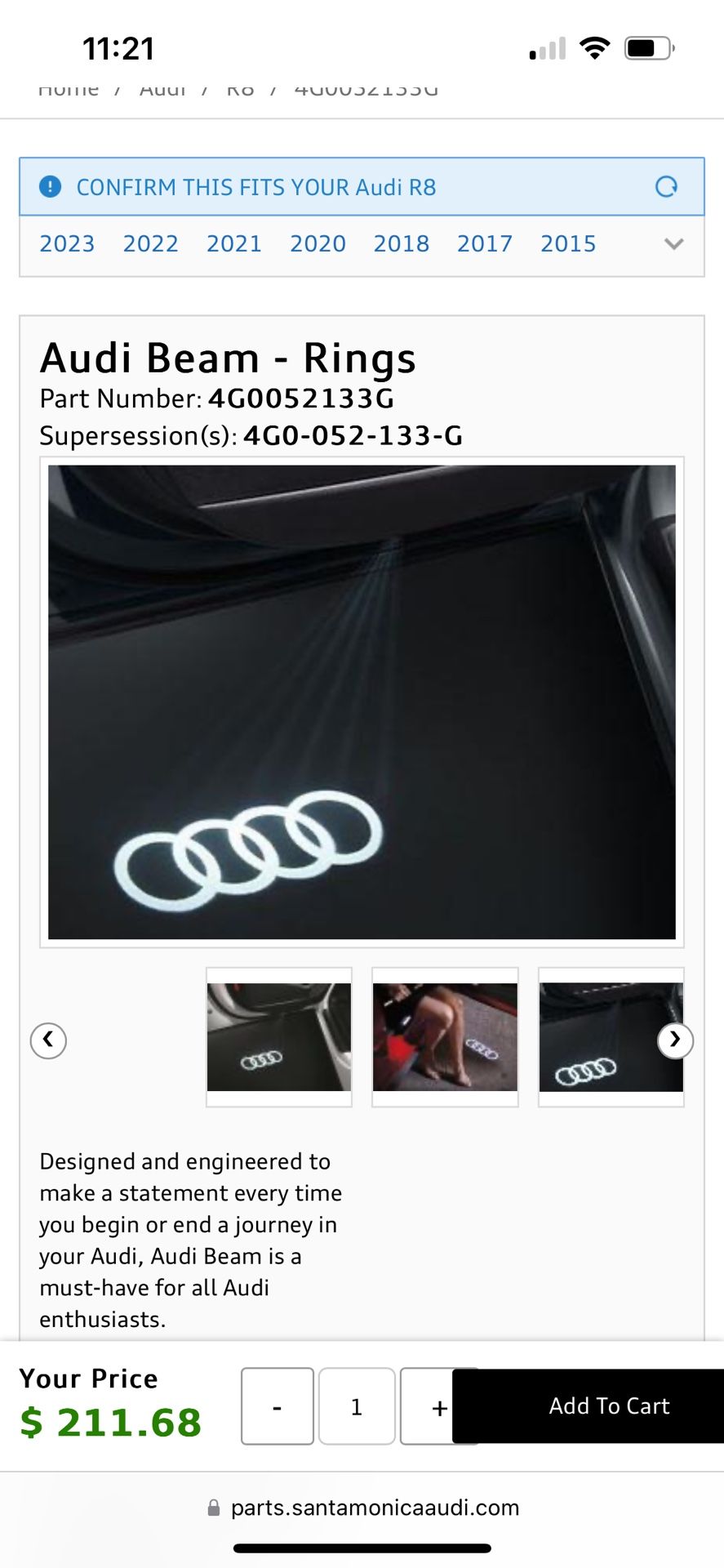These are Audi puddle lights they are OEM from the dealership the logos are brighter and sharper when you get them from the dealership, these are originally over $200 The display are the logo for Audi “rings”