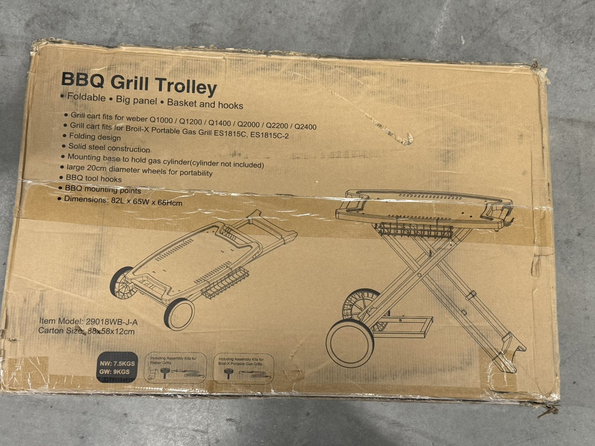 Grill cart fits for Q1000 Q1200 Q1400 Q2000 Q2200 Q2400 Grill cart fits for broil-x portable gas grill ES1815C ES1815C-2 Folding design. Solid steel construction. Large 20 cm diameter wheels BBQ tool hooks
