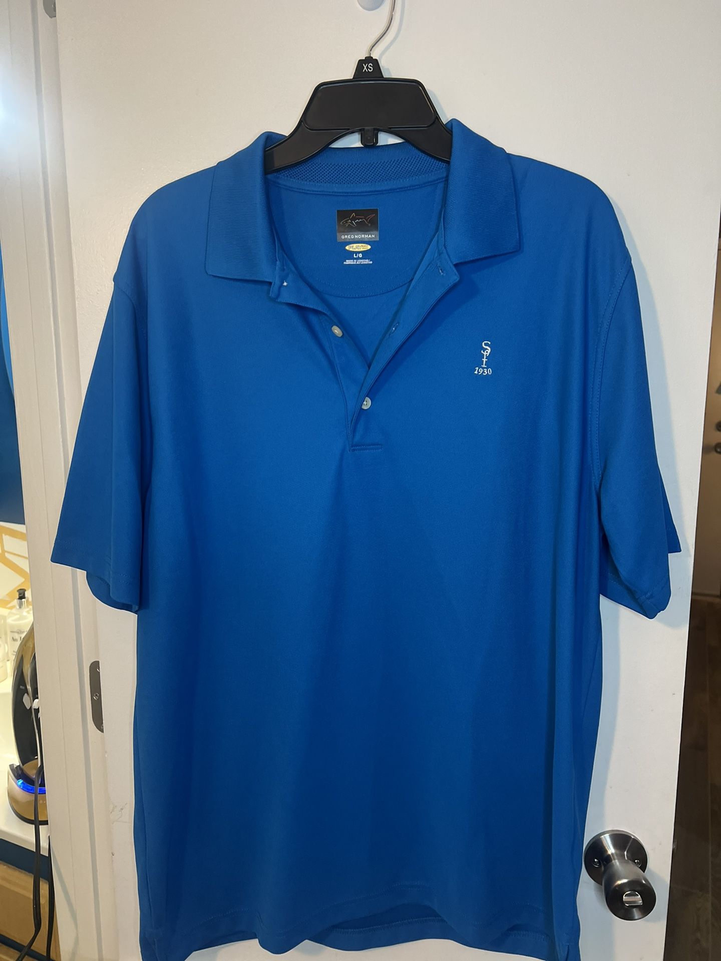 Mens golf shirts: Greg Normal size Large, polo red sweater size medium, other shirts are from Belk both larges. $4 each or or all 4 for $15