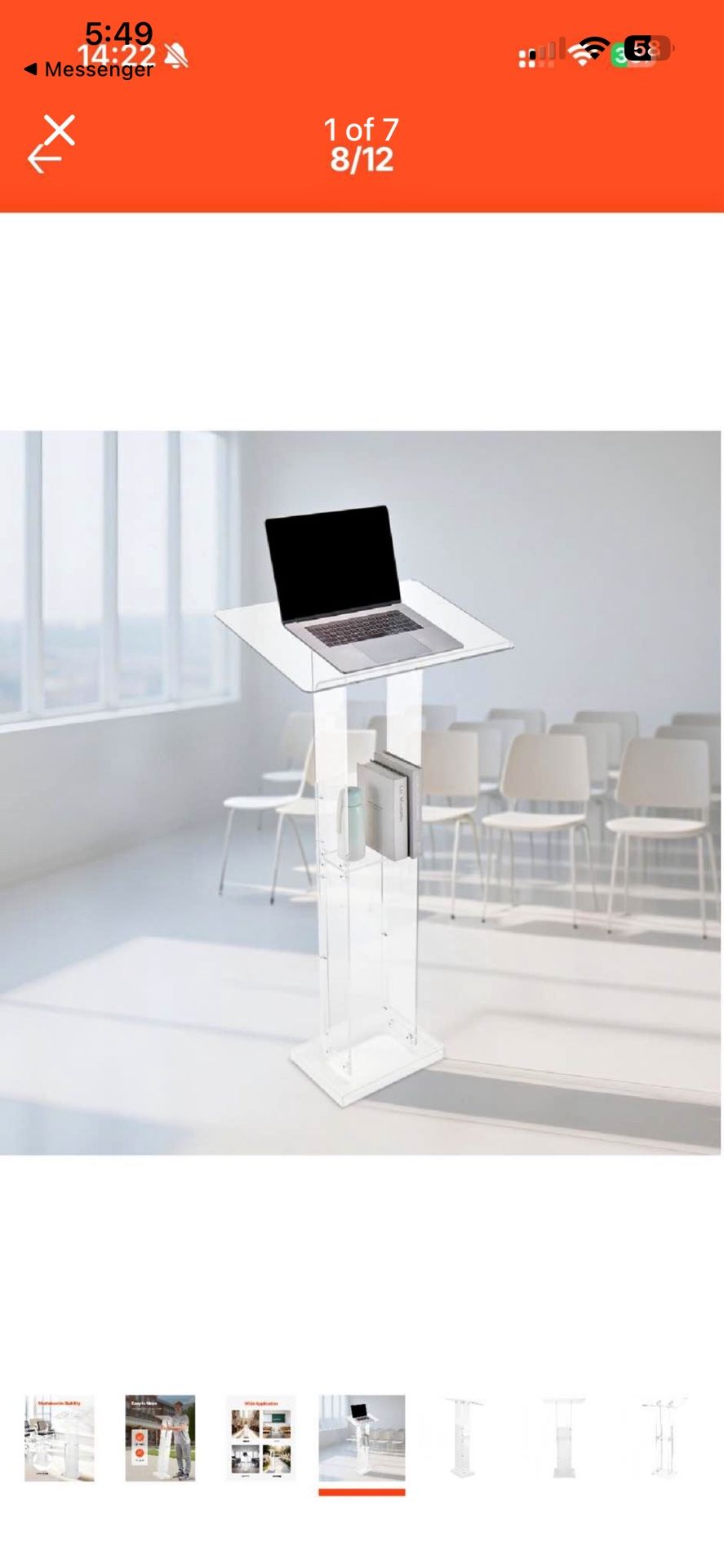 Podium Stand, 50-Inch Acrylic Lectern, Portable Laptop Desk with Wide Reading Surface and Storage Shelf, Book Stopper, Floor-Standing, for Classroom,