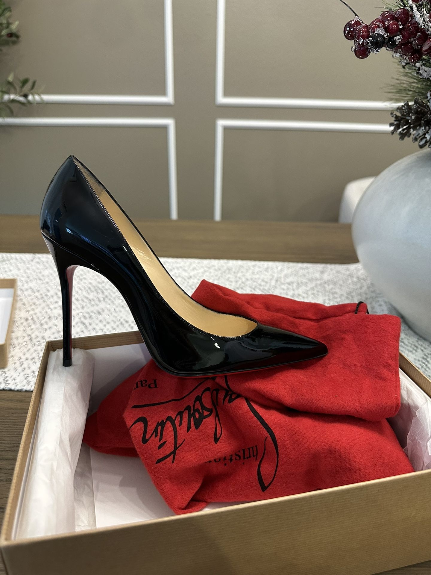 Christian Louboutin so kate 100mm heels. Size 37.5. Authentic with all original dust bags and box and receipt. Only used 1 time for an event. No scuffs or scratches. They go for $945 brand new now.
