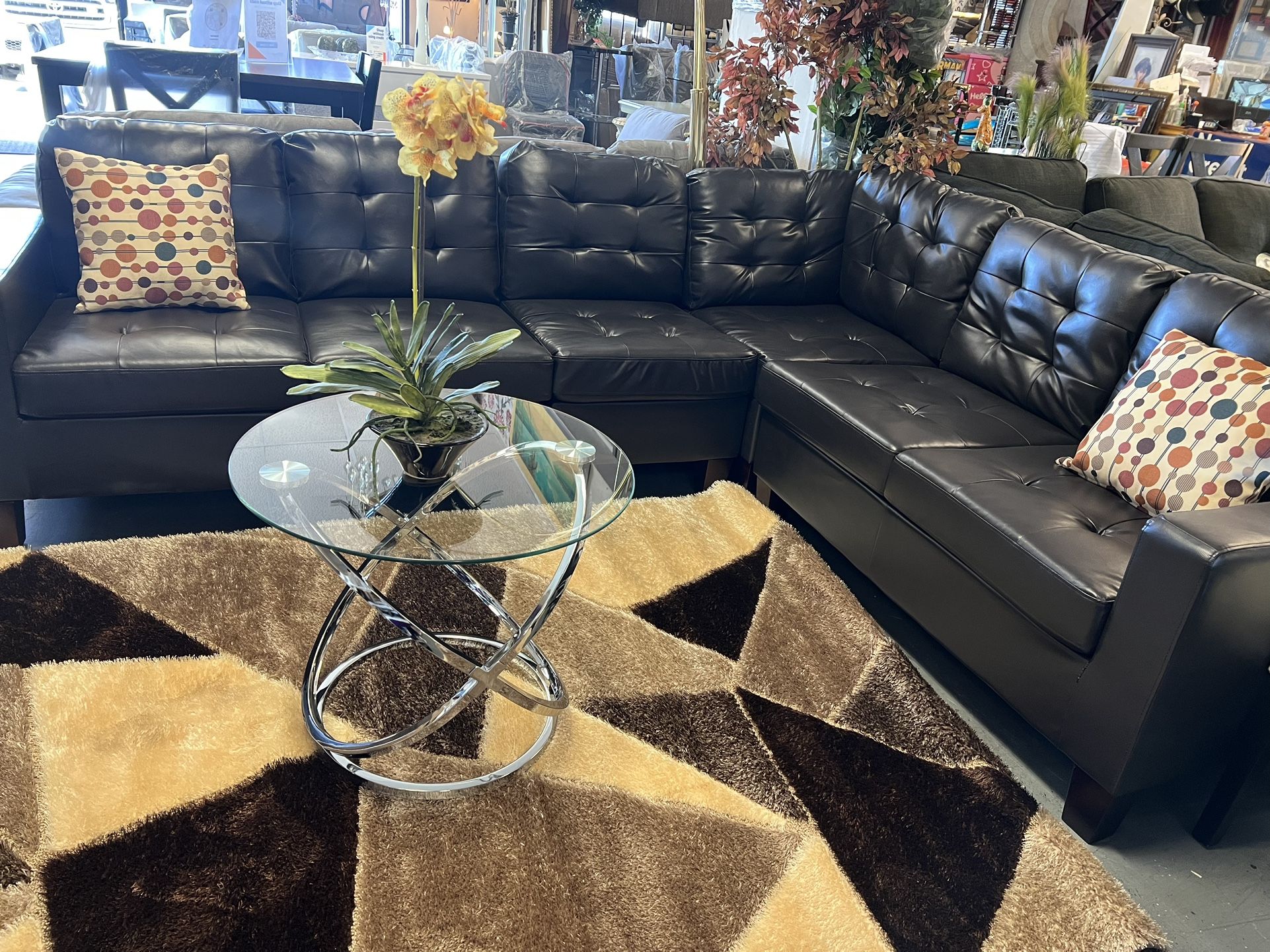 Brown leather match Sectional Rugs $80-129 Coffee table set $299 $50 down and take it home today Finance available