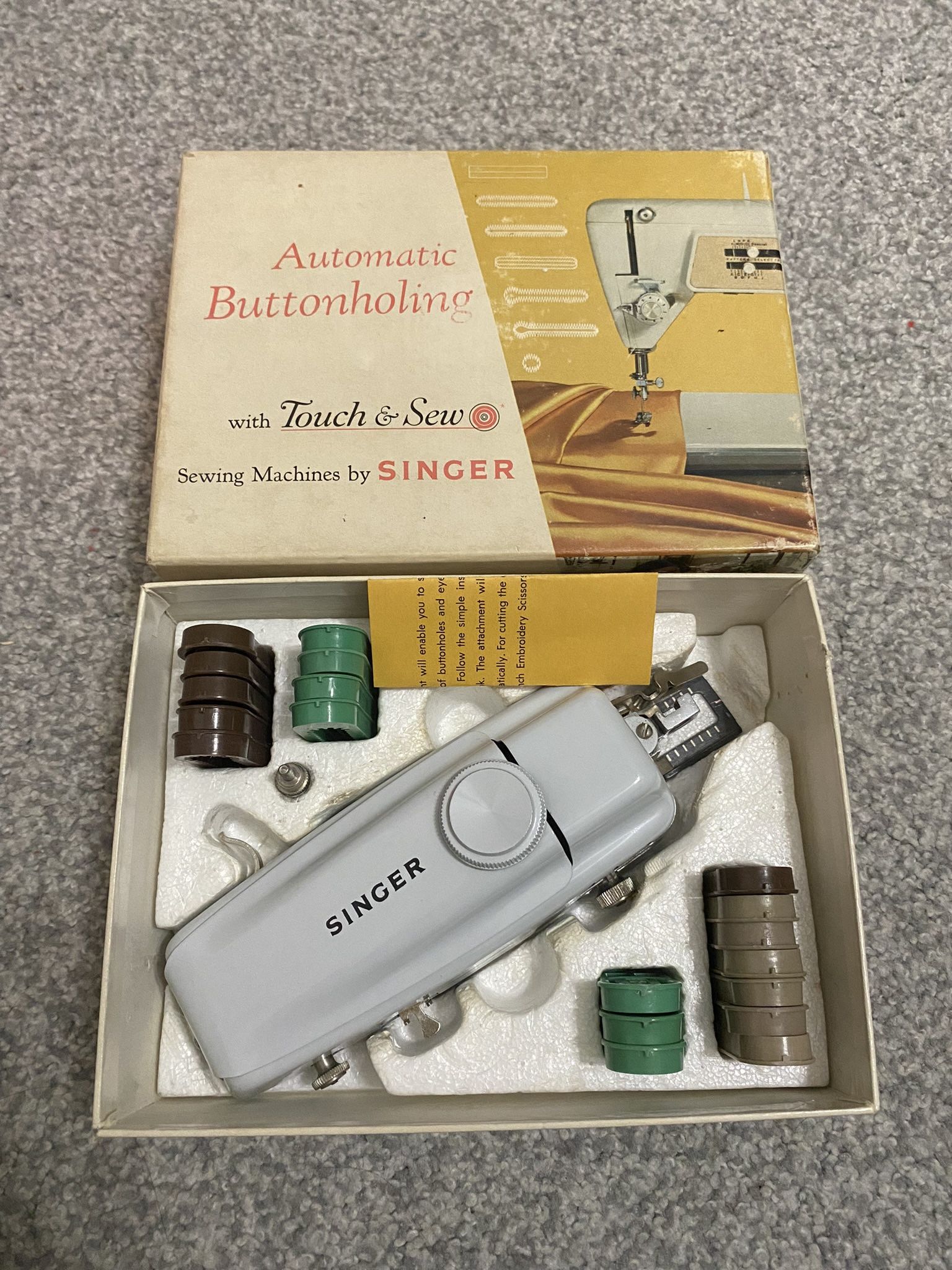 Vintage Singer Automatic Buttonholing Part Number 161829 Buttonholer Zig-Zag Sewing Machines. Condition: pre-owned but was rarely used, like new. Very clean and perfect cosmetic condition. Complete set. Sold as pictures.