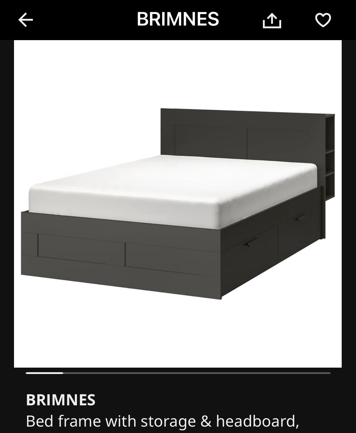 IKEA Brimnes storage bed w/ headboard, slats and mattress, gray, king size