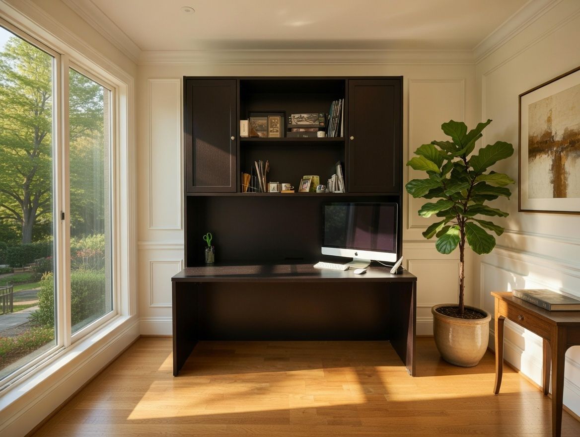High end executive desk with file cabinet. Dania Desk - 24 x 71 Hutch 57 H x 72 W x 14 D Credenza file cabinet - 20 D x 36 W x 28 H Overall height 85”