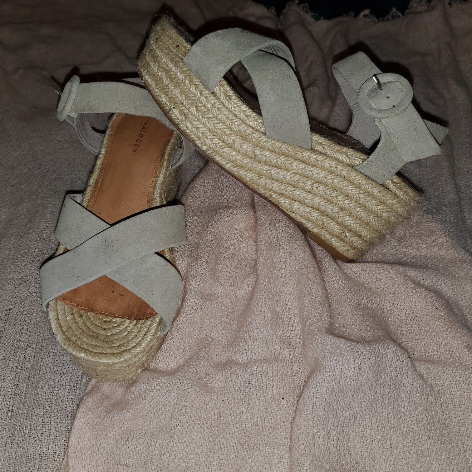Beige Suede Halogen wedges with rope soles, size 7 M, good condition