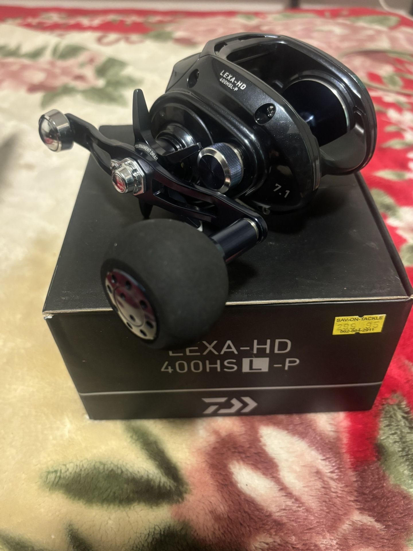 Selling my brand new in box Diawa lexa 400 HD high speed left hand with power handle. Asking $300 firm or trade for a lexa 500 left hand