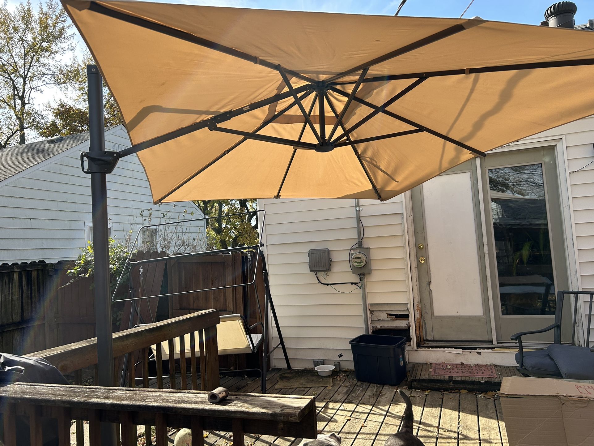 Barely used in great condition also comes with sand weights to hold in place! Easily covers entire deck, hurry will sale fast