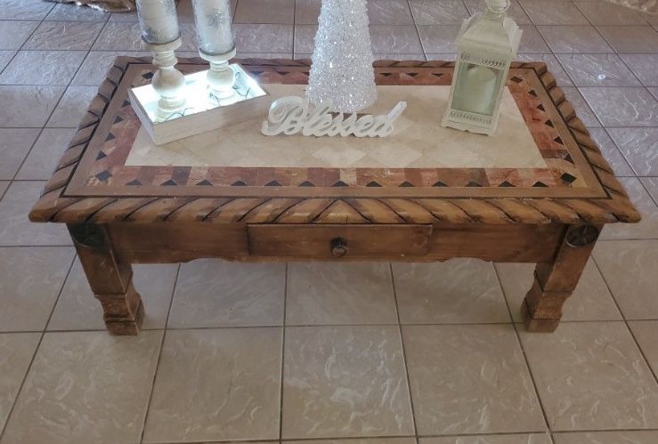 2 End tables with 1 coffee table it’s 2ft wide & 4 ft long.