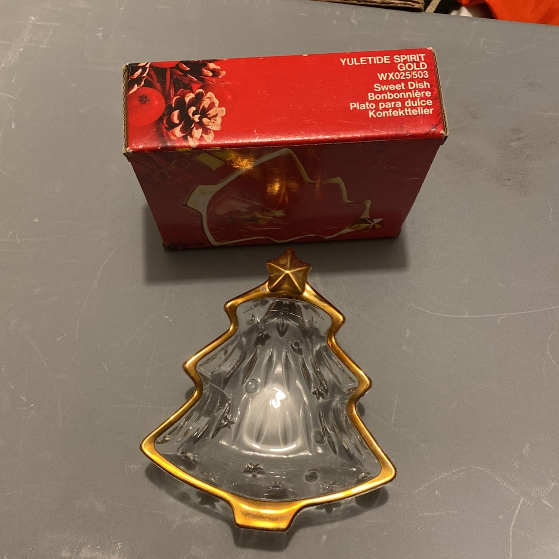 Cute little Xmas tree candy dish! In original box. Just minimalizing!