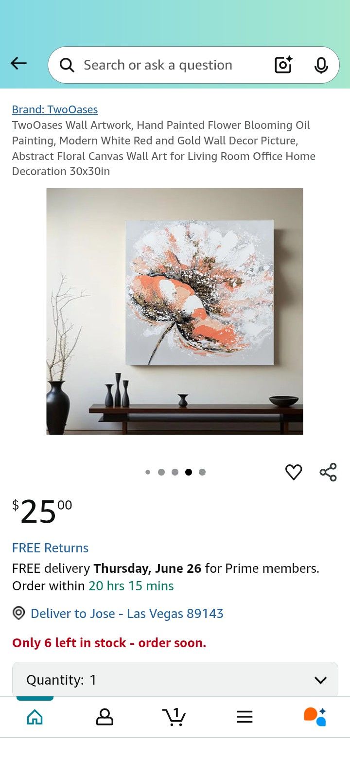 TwoOases Wall Artwork, Hand Painted Flower Blooming Oil Painting, Modern White Red and Gold Wall Decor Picture, Abstract Floral Canvas Wall Art for Living Room Office Home Decoration 30x30in