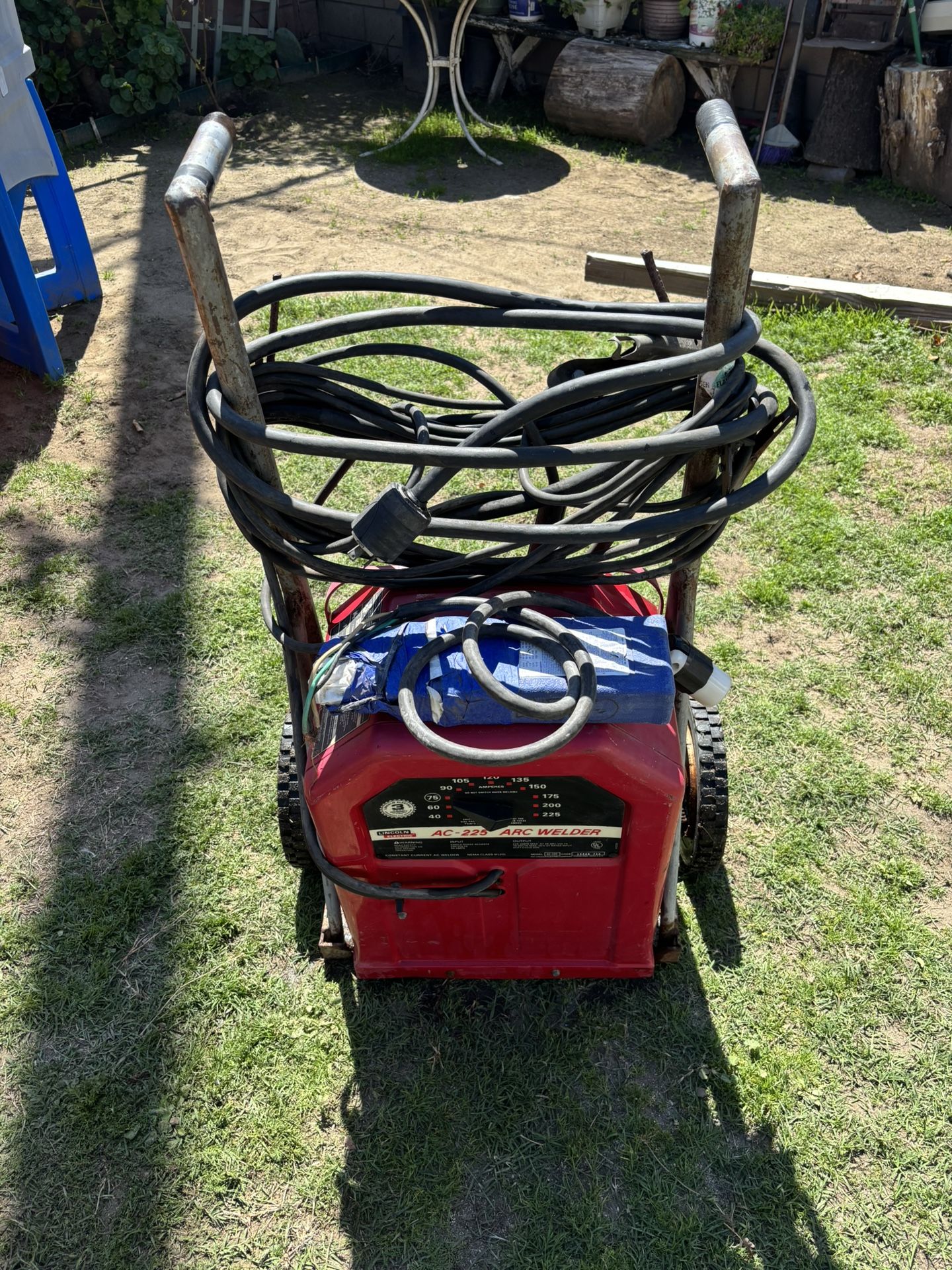 Works great, comes with 30amp adapter, box of welding rods and dolly