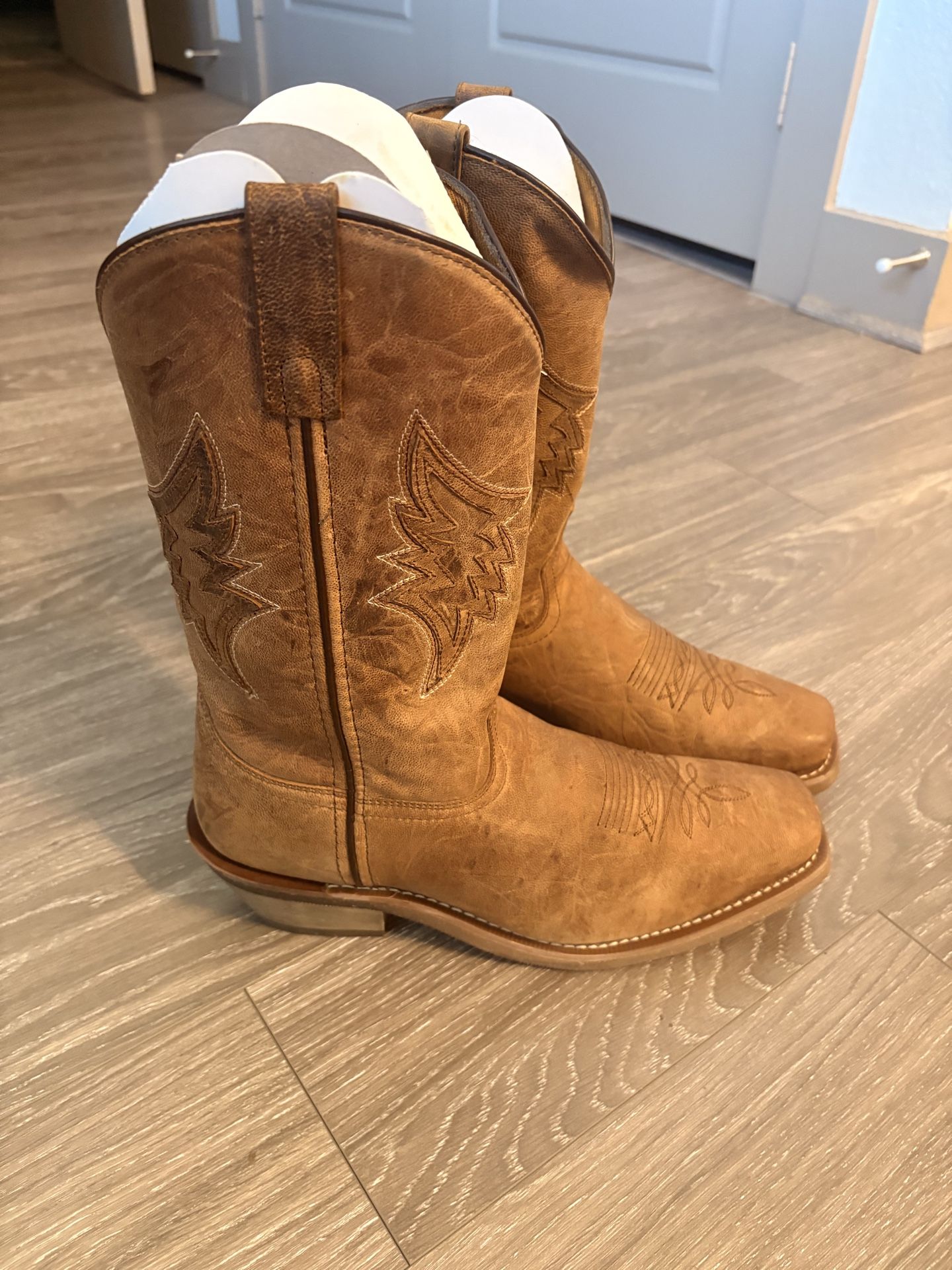Lightweight and handsome, good traits in a cowboy boot. The Laredo Nico is made of soft taupe leather with traditional western stitching on the upper. Comfort comes from the removable Ortholite Insert and lightweight Trucker Flex outsole. Cowboy square toe and cowboy heel. FOOT: LEATHER HEIGHT: 12" INSOLE: COMFY REMOVABLE ORTHOTIC OUTSOLE: TRUCKER FLEX RUBBER TOE: COWBOY SQUARE HEEL: COWBOY