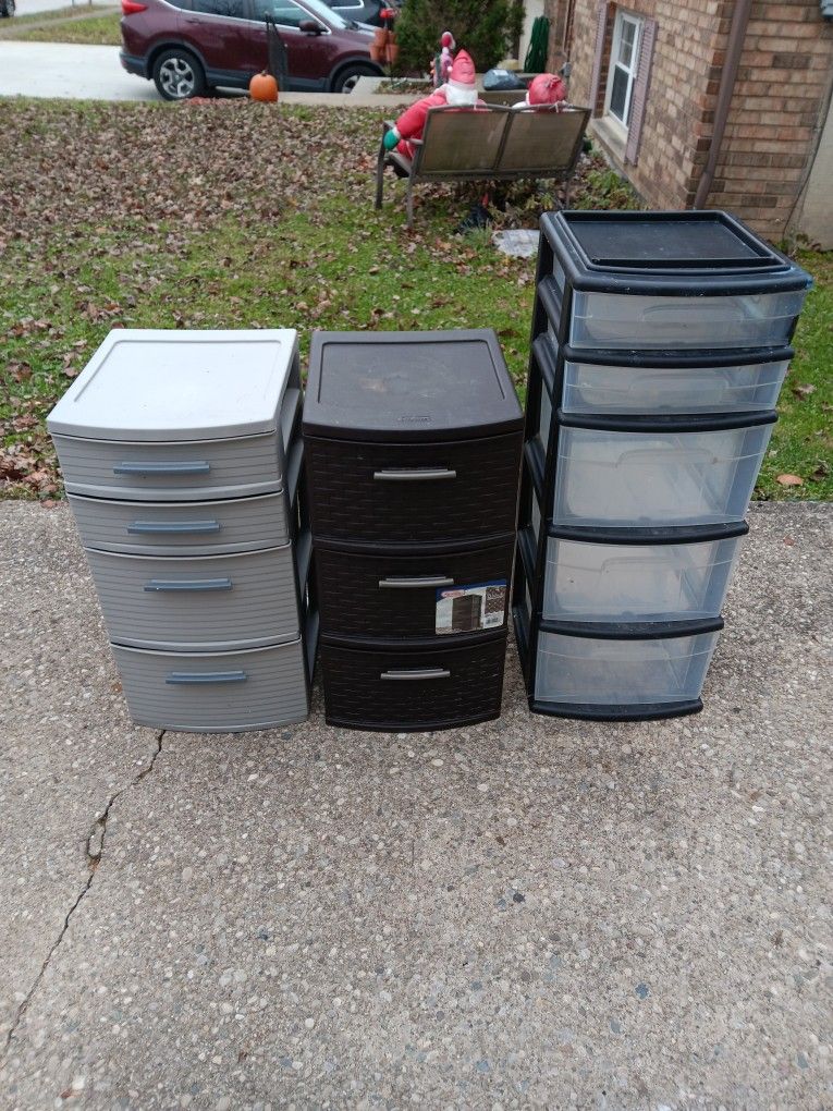3 sterilite storage chests. 2 are 12.5"×14.5"×24" other one is 12.5"×14.5"×32"