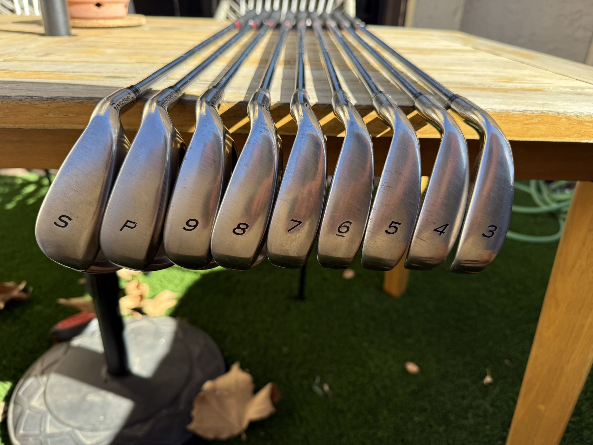 Used TaylorMade RAC HT iron set (3–SW). These are the “High Trajectory” version—very forgiving and easy to launch. Great for taller players or anyone needing +1” length and midsize grips. Specs • Right hand • +1” length • Steel S-Flex (95g) • Golf Pride Tour Wrap Midsize grips • 3i, 4i, 5i, 6i, 7i, 8i, 9i, PW, SW Condition Normal face wear, grooves still solid, no major dings. Grips still playable. Well cared for. Why they’re good • Higher launch and easier to hit than standard RAC irons • Good for mid-high handicaps • Harder to find extended length sets already built Fit Recommended for golfers around 5’11”–6’5” depending on wrist-to-floor. (Equivalent to XL glove fit.)