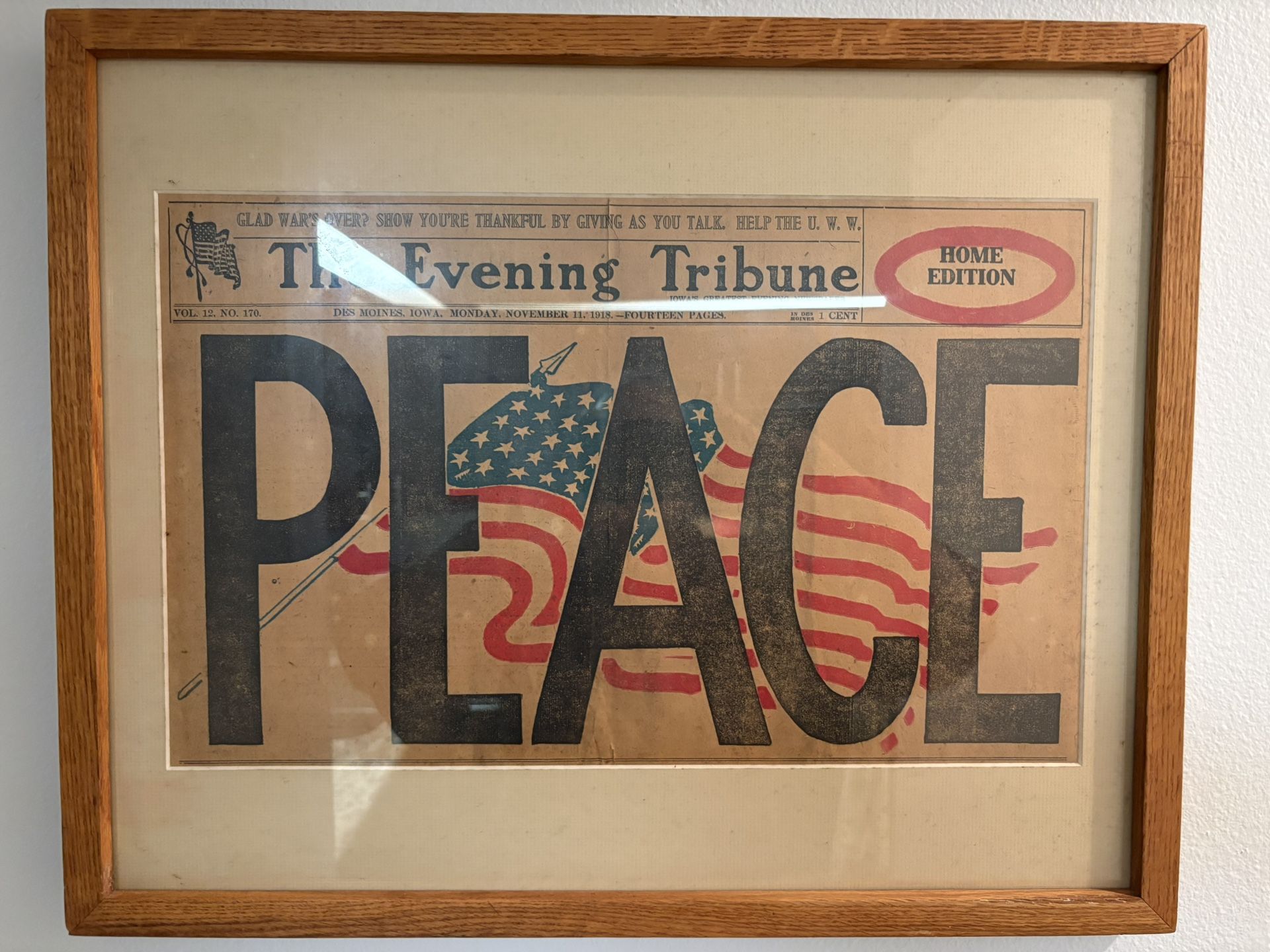 WW I ‘PEACE’ Framed Newspaper